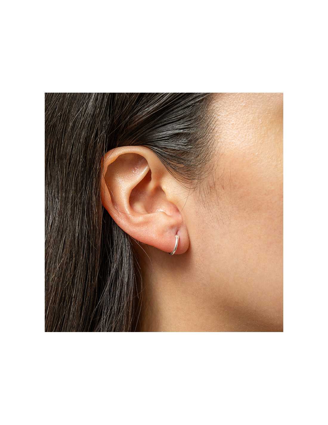 Estas argollas de plata 925 de 10mm u 16mm de diámetro y 1.2mm de grosor son versátiles y pueden usarse en la segunda y tercera perforación. Su diseño hipoalergénico te garantiza un look moderno y cómodo.