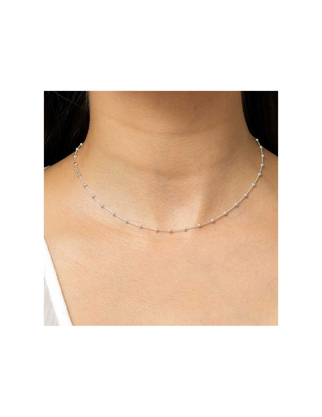 Este collar está elaborado en plata 925 y cuenta con pequeñas esferas de plata unidas en una longitud ajustable de 40cm a 44cm . Añade un toque de sofisticación y estilo a tu look con este collar versátil. Todas nuestras joyas son hipoalergénicas y libres de níquel.