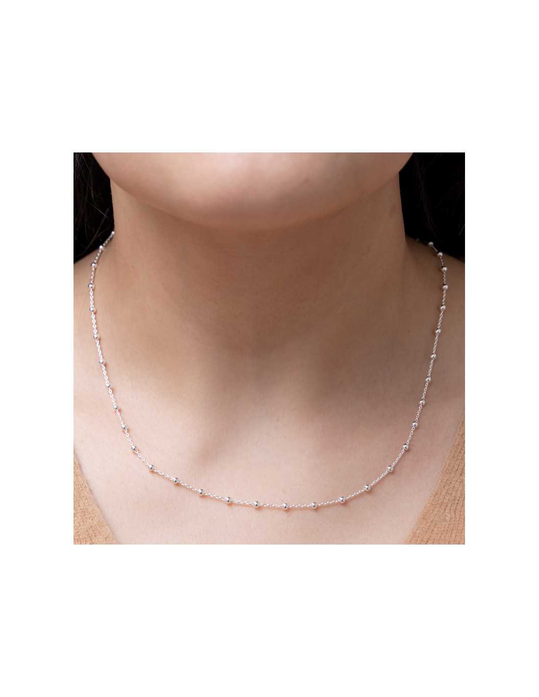 Este collar está elaborado en plata 925 y cuenta con pequeñas esferas de plata unidas en una longitud de 45cm con largo ajustable hasta 48cm. Añade un toque de sofisticación y estilo a tu look con este collar versátil. Todas nuestras joyas son hipoalergénicas y libres de níquel.