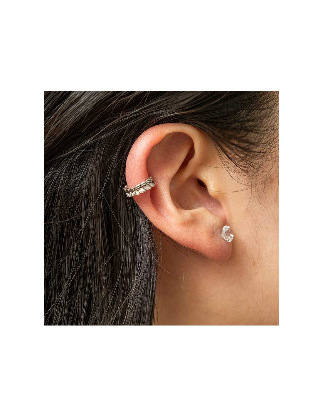 Este encantador earcuff está elaborado en plata 925 y presenta un diseño de hojas con aspecto envejecido. Con un diámetro de 11mm, esta joya es ideal para añadir un toque de naturaleza a tu look. Todas nuestras joyas son hipoalergénicas y libres de níquel.
